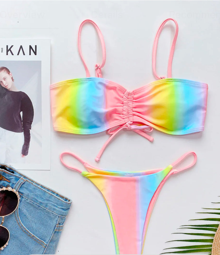 Make a splash this season with this stunning rainbow ombré bathing suit from Preppy Essentials! Designed for both comfort and elegance, this piece features a seamless gradient of pastel hues, blending soft pinks, blues, and yellows for a dreamy, sun-kissed look. The high-quality fabric is soft, quick-drying, and offers UV protection, ensuring you stay stylish and protected all day. Subtle gold hardware and adjustable straps add a touch of sophistication, making it the perfect choice for poolside lounging or beach adventures. Effortlessly chic and undeniably luxurious, this bathing suit is a must-have for your summer wardrobe!